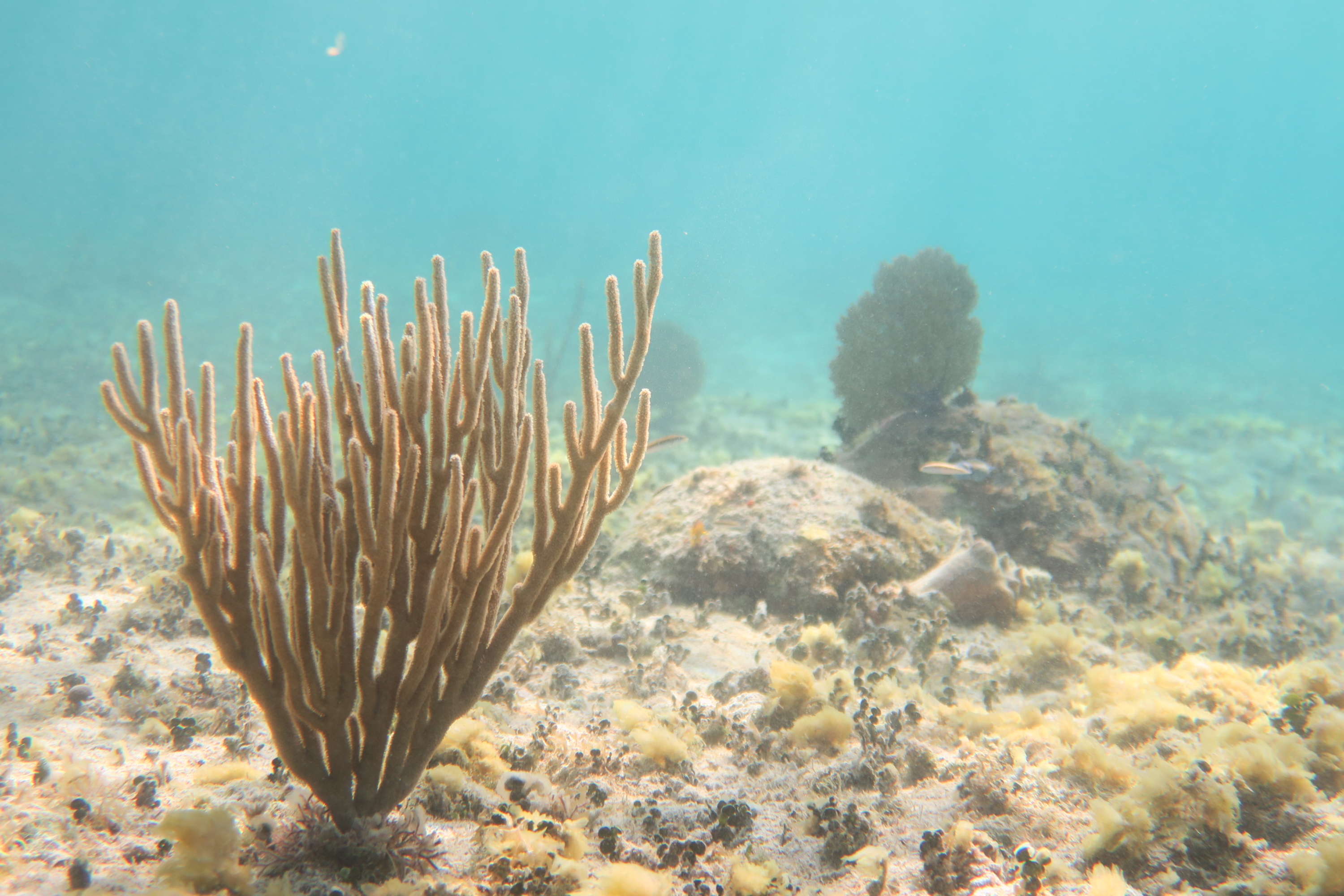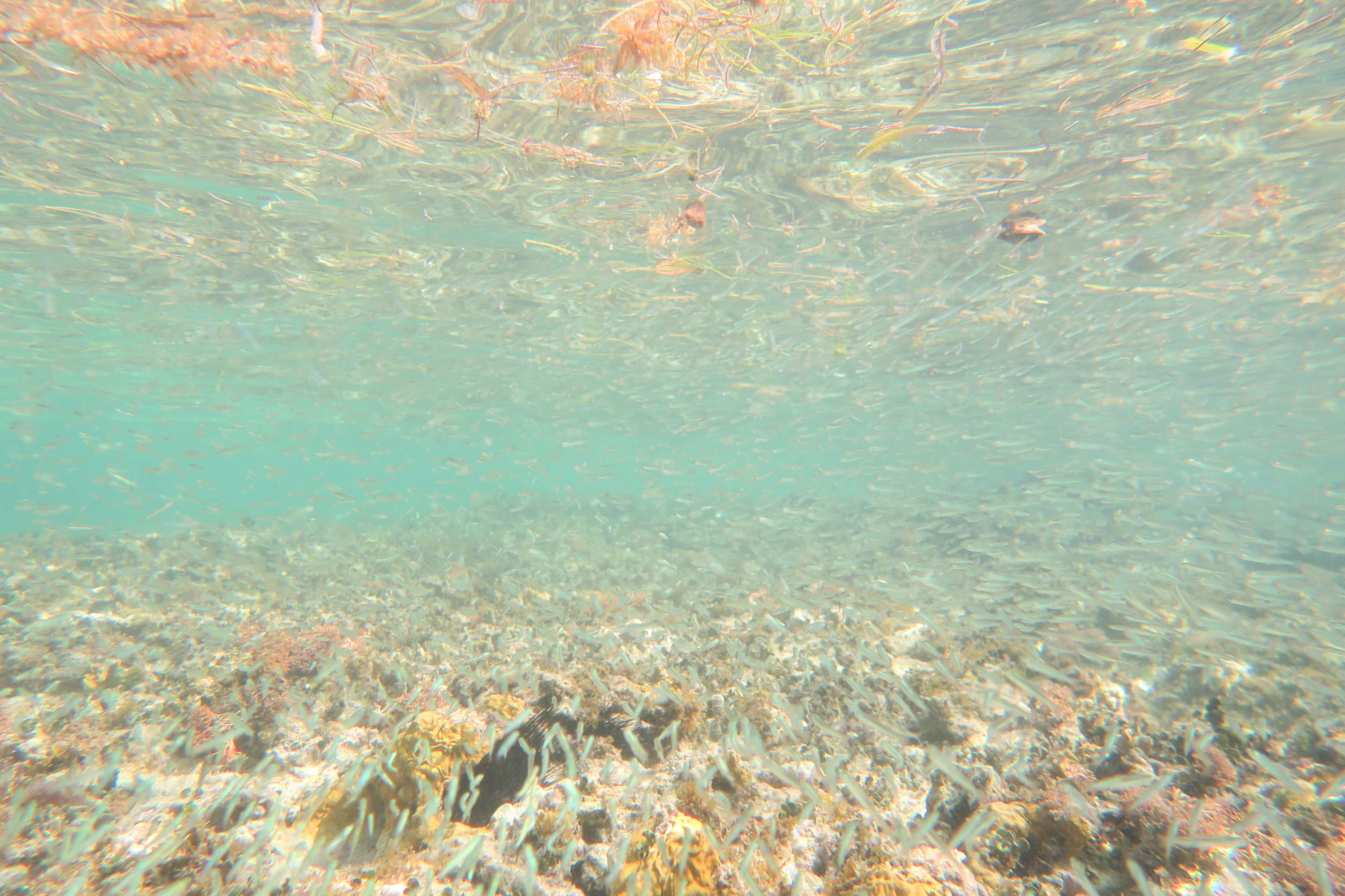 Direkt an der Küste entdecke ich nochmals ein schönes Riff mit ganz vielen kleinen Fischen und Seeigeln. Das Wasser ist hier nur etwa 50cm tief, und zu Fuss unterwegs sein ist somit eine ganz schlechte Idee. Nun gibt der Akku der Kamera komplett den Geist auf.