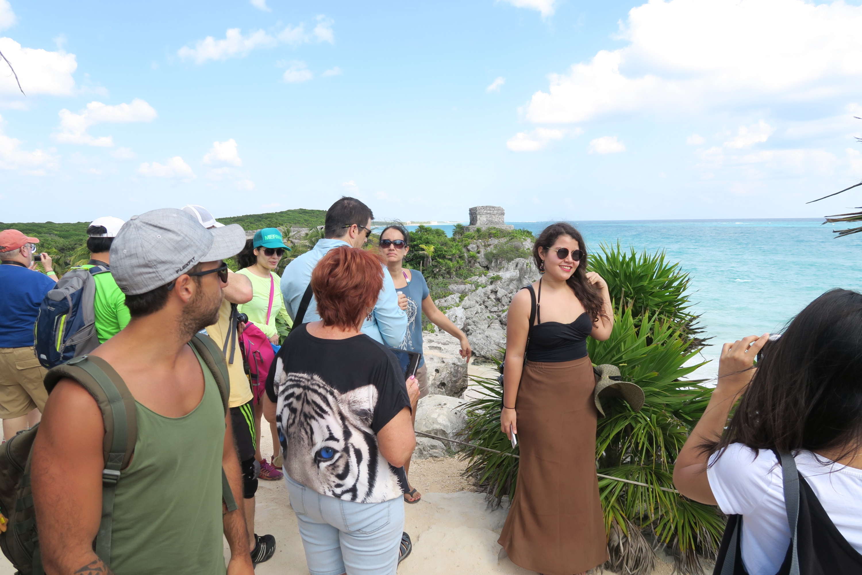 Eine kleine Reise will ich hier noch unternehmen bevor ich weiter fliege. Stilecht nehme ich das Collectivo nach Tulum. Das ist hier in Mexiko die normale Transportmethode der Einheimischen. Dort wo alle Collectivos halten, reihe ich mich in die Schlange nach Tulum ein. Die 15-pläzigen Busse stehen auch Schlange, werden zuvorderst stetig gefüllt und fahren sofort los. Nach etwa 10min ich drin und auf dem Weg. Die 60km sind in weniger als einer Stunde bewältigt. Der OV hier ist um Welten besser als in den USA.