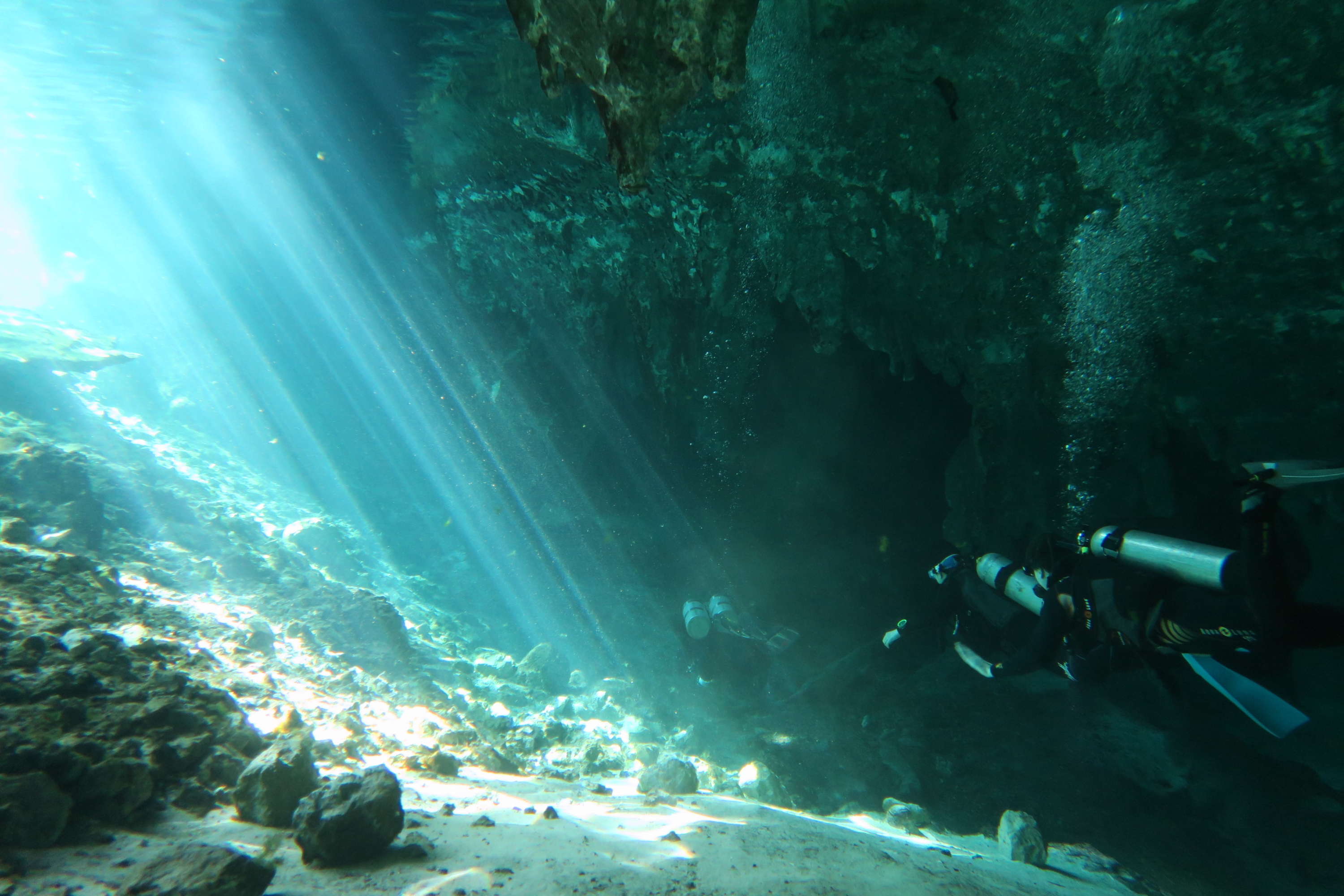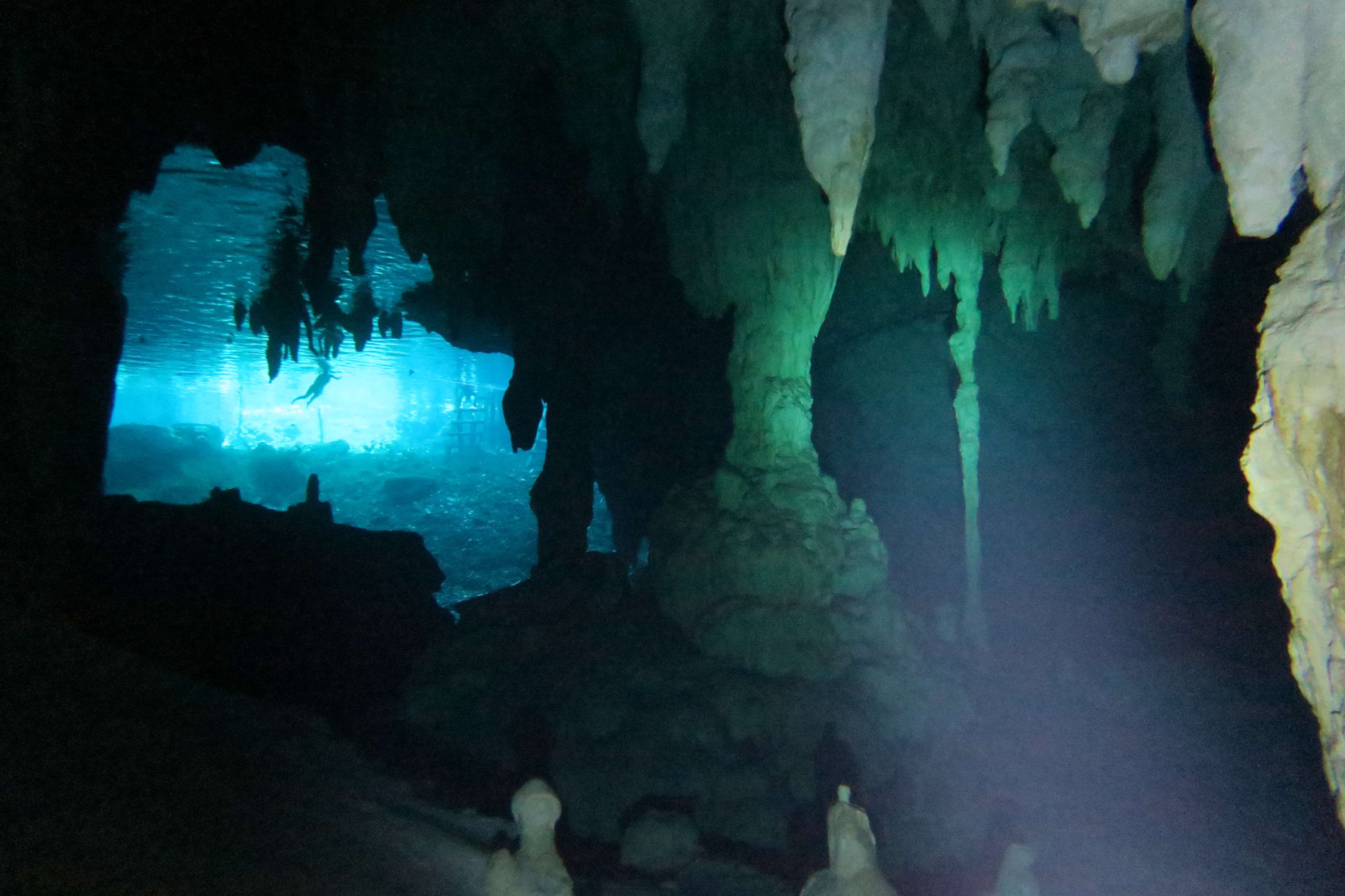 Die zweite heisst Grand Cenote und könnte kaum unterschiedlicher sein. Das Wasser ist glasklar, was einem vorgaukelt, dass man durch die Höhle schwebt. Sie ist auch nicht tief, sondern geht seitwärts weg. In den seichten Tiefen vom wenigen Metern und mit komplettem Neopren ist es nicht ganz einfach den Auftrieb zu kontrollieren. Die Seetauchgänge haben mir aber gut geholfen.