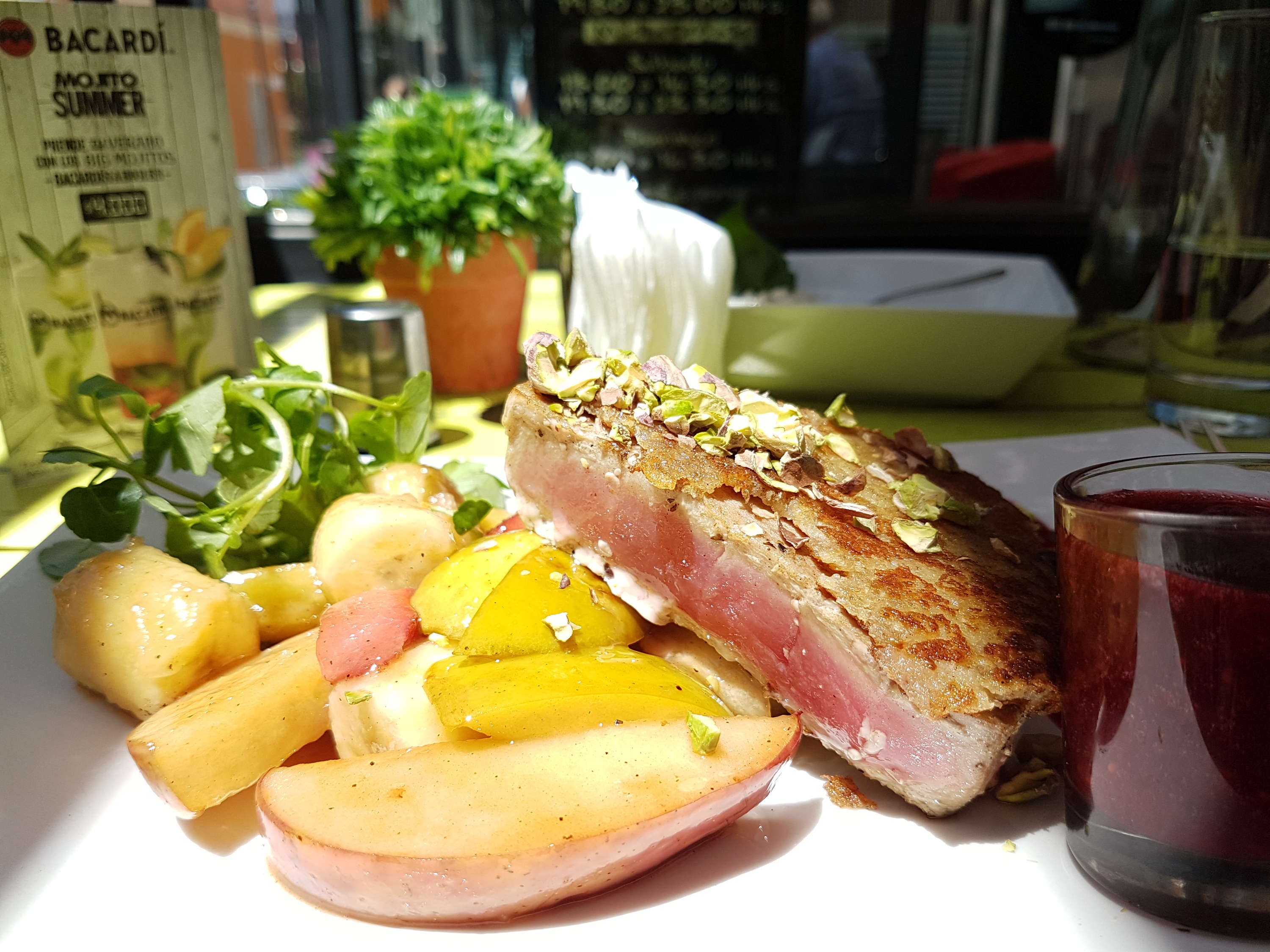 Eine Unterkunft ist auch hier schnell gefunden, ich nehme ein Einzelzimmer in einer Jugi. Dann wird der Ort ausgekundschaftet und Punkt 13:00, wenn die Restaurants öffnen, habe ich auch schon das mit dem interresantesten Menü gefunden. Es gibt Thunfischfillet, mmhh.