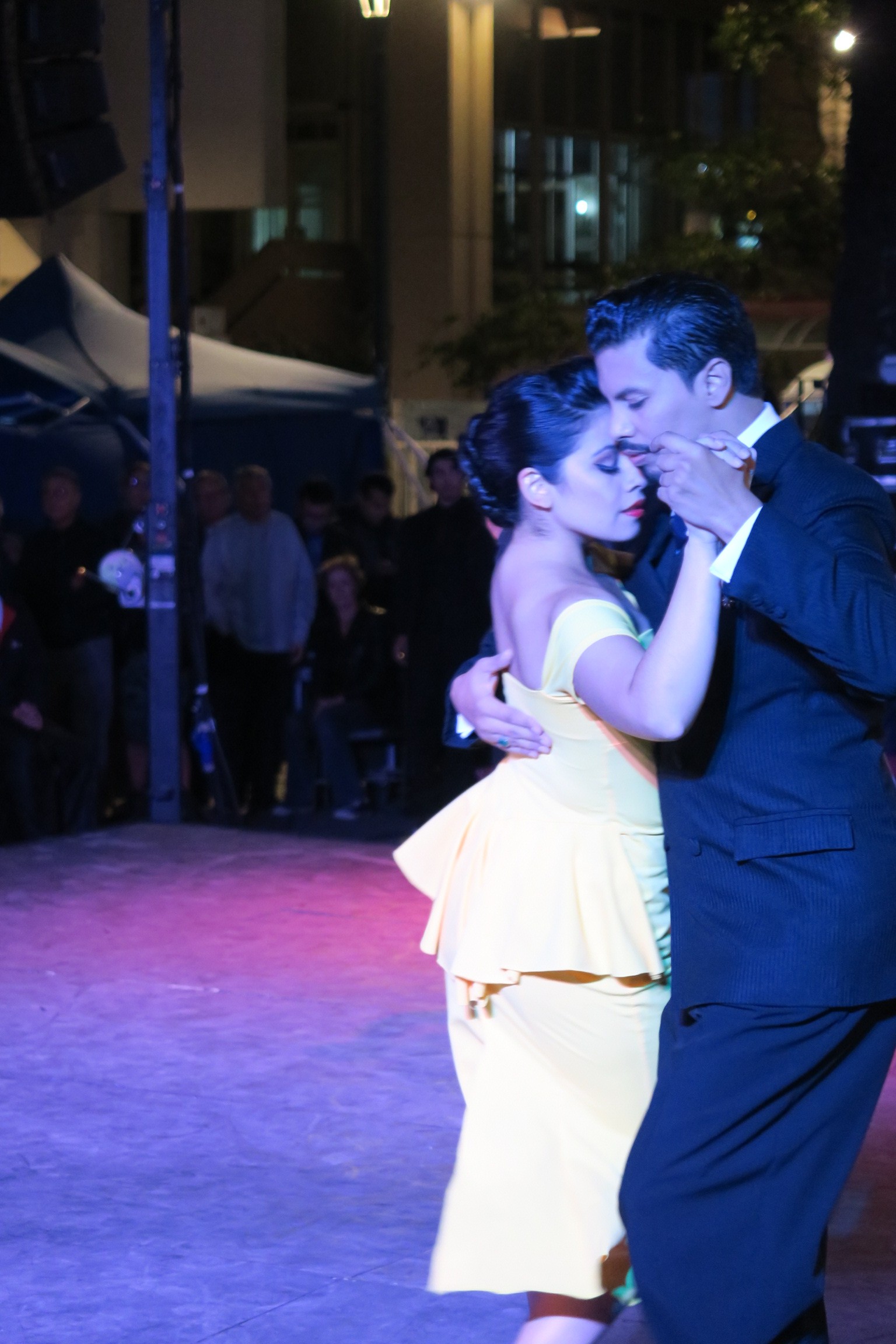 Am Abend lockt ein Tangowettbewerb mitten in der Stadt. Die Paare tanzen alle gleichzeitig und werden dabei von einer Joury bewertet. Der Körperkontakt ist bei allen sehr eng. Die Frauen schauen nur direkt den Partner an, so dass man ihr Gesicht kaum sehen kann. Wo sie hintreten können sie sicher nicht sehen und müssen sich somit auf den Mann verlassen. Wenn der dazu noch breit gebaut ist, dann sieht man die Frau kaum mehr. Auch eine Sängerin singt live mit. Interessant ist, dass viele der Gewinnerpaare aus Argentinien kommen und sogar noch Applaus bekommen. Scheinbar ist die Mauer zwischen den Ländern nicht immer so hoch.