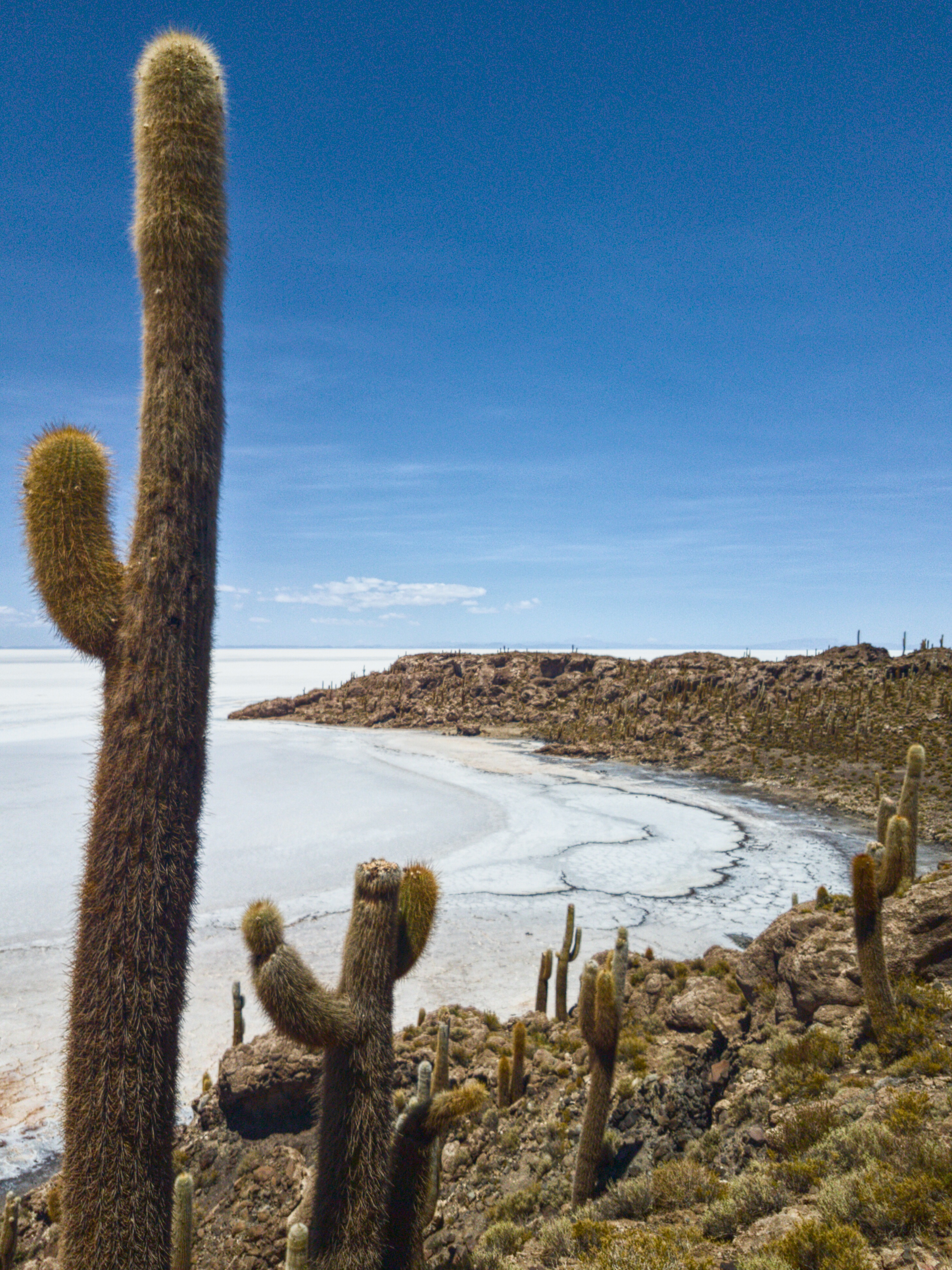 Die Fahrt durch die Wüste ist wunderschön. Teilweise sind die Hügel in vielen verschiedenen Farben gemalt und erinnern mich an die Painted Desert. Ist wirklich schade, dass wir kaum anhalten. Wenn ich selbst unterwegs wäre, dann würde ich etwa 20 Fotostopps machen. Auch Kakteen wachsen nun überall, die Wüste wird immer trockener. Nun kommt auch die Salzebene zum Vorschein, das ist das heutige Ziel.