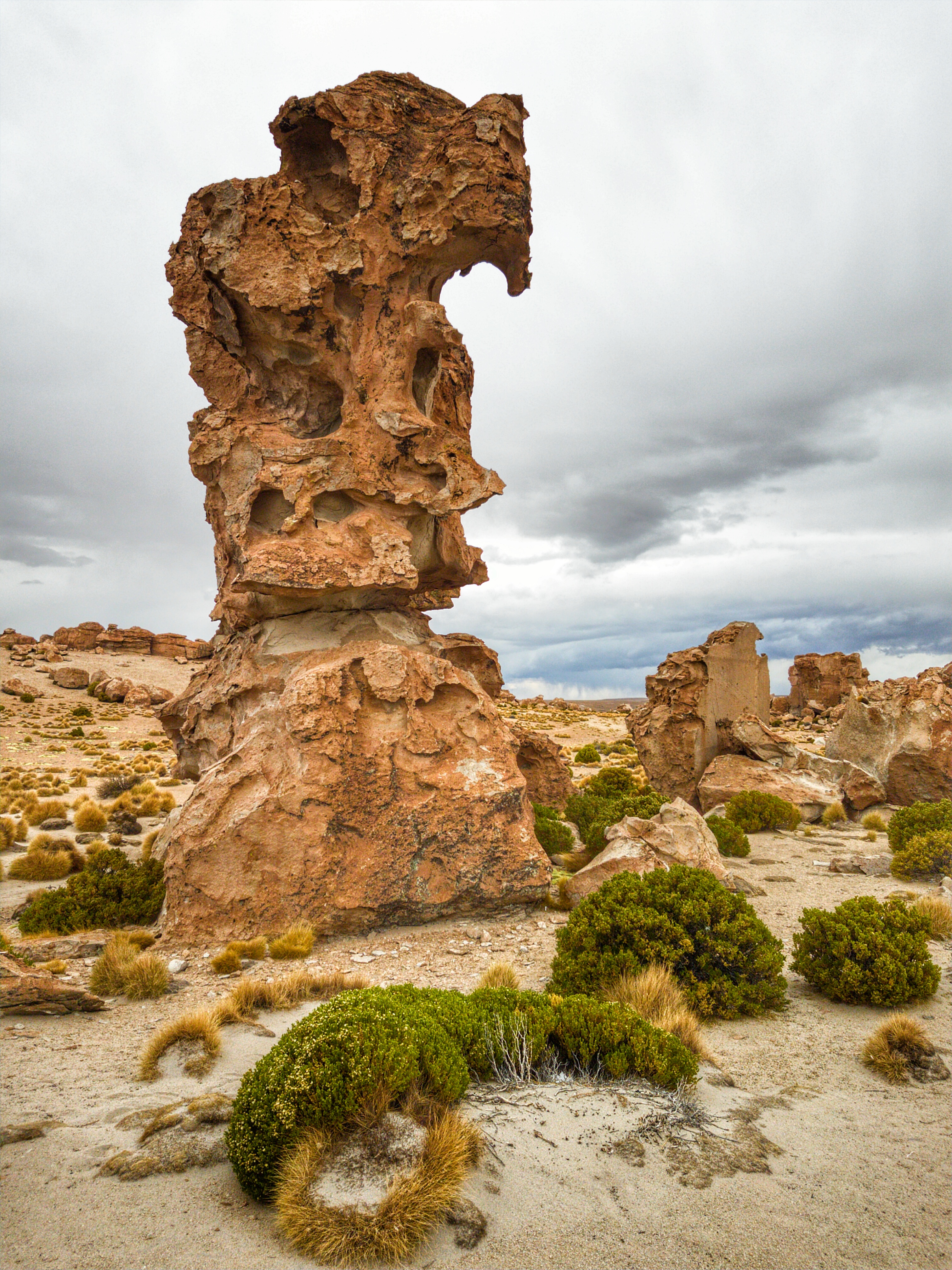 In der Umgebung des Hotels hat es leider kein Restaurant, deswegen esse ich halt wieder auf der Strasse zu Mittag. Empanados sind auch gut. Danach fährt der Bus wieder los in die Wüste, jedenfalls versucht er das. Ein Schild kommt leider dazwischen, aber zumindest gibt es keinen Schaden am Bus. Der am Schild wird auf etwa 15 Franken heruntergehandelt.