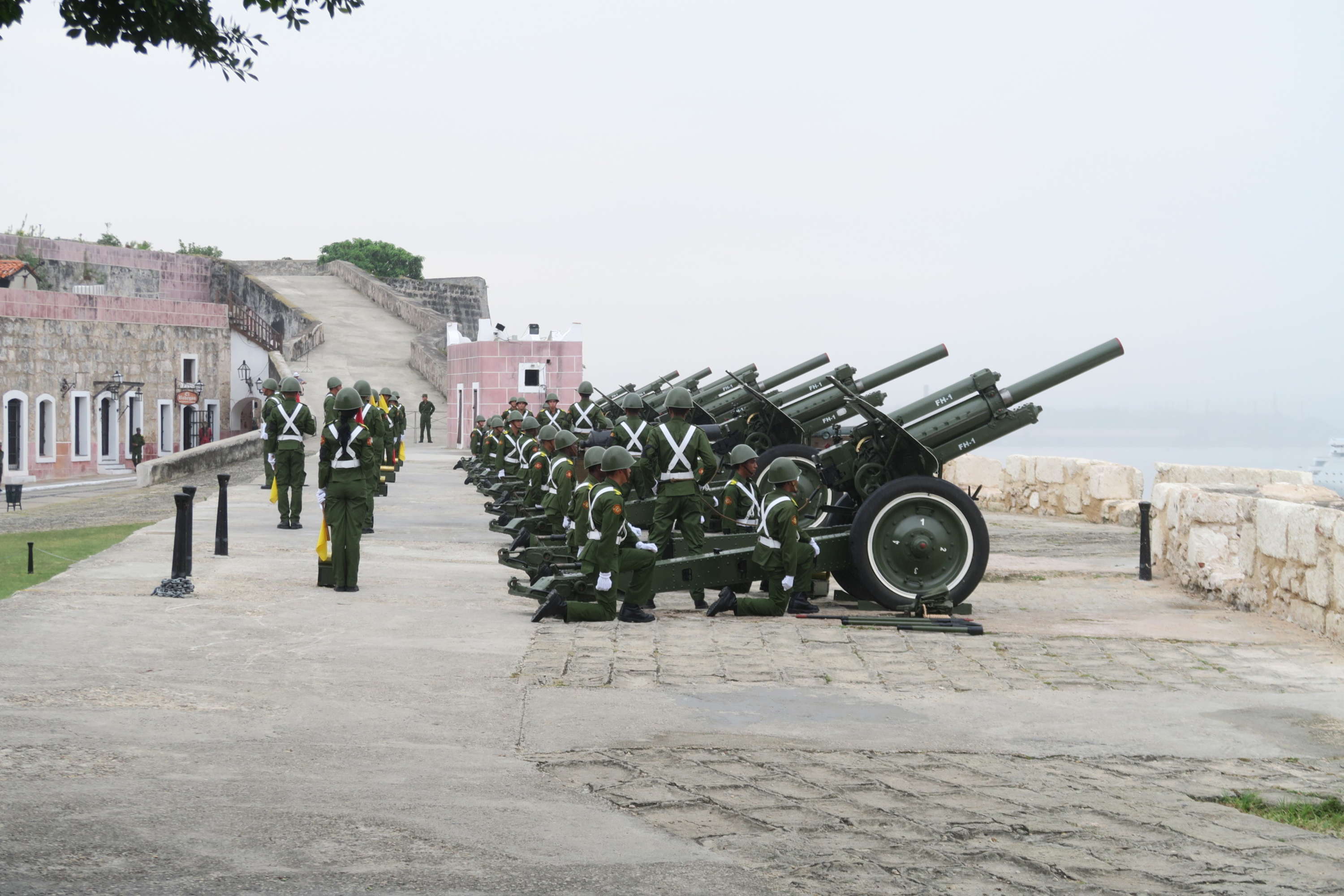 Es ist schon fast 10:00, ich muss mich also beeilen um zum stündlichen Salutschiessen zu Ehren Fidels zu kommen. Normalerweise wird nur um 21:00 einmal geschossen, jetzt aber eben um jede genaue Stunde. Zu meinem erstaunen haben sie 6 moderne Geschütze aufgebaut, von denen aber nur eines feuert. Natürlich nur mit Platzpatronen. Ist irgendwie mühsam, so weiss ich nicht welches ich filmen soll. Da es regnet schaue ich erstmal zu und halte die Ohren zu. Knallt verdammt laut.