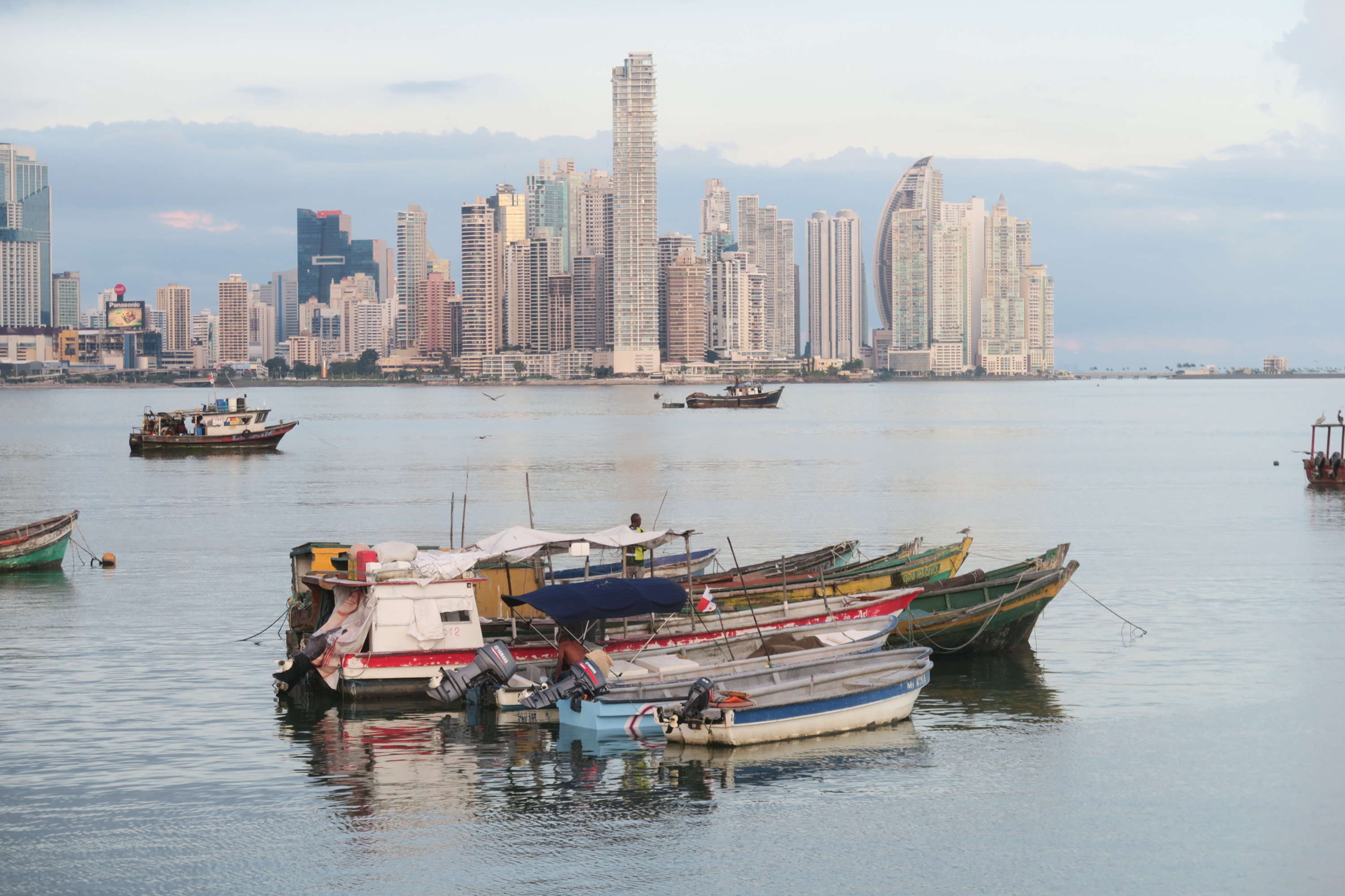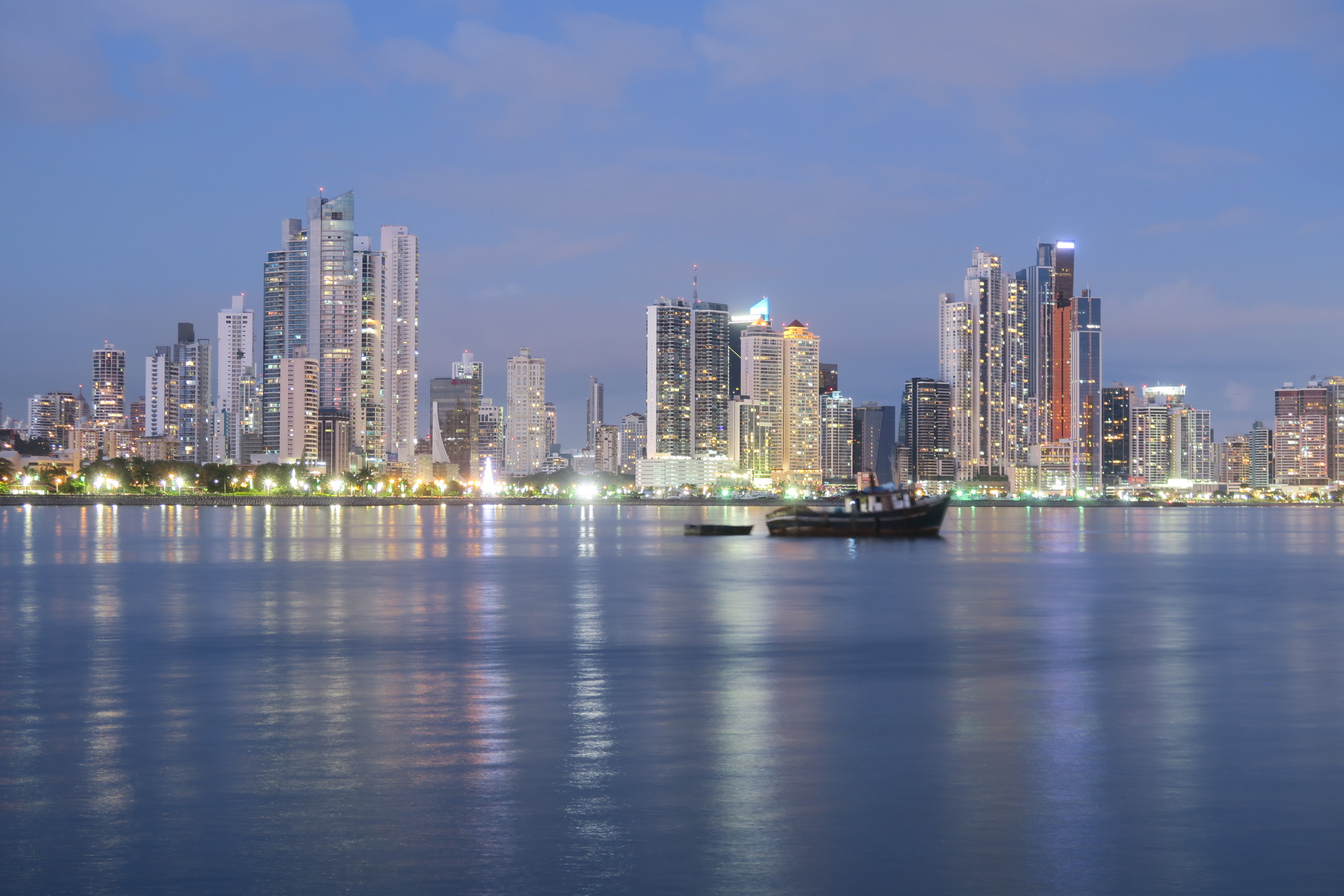 Den Sonnenuntergang geniesse ich im langen Park, welcher über dutzende Kilometer der Küste entlang führt, direkt am Meer mit dem Blick auf die Wolkenkratzer. Bei zunehmender Dunkelheit stört der riesige Werbebildschirm zwischen den Hochhäuserm immer mehr und verschandelt aus meiner Sicht die Skyline. Besonders zur blauen Stunde ist es hier wunderschön, Panama Stadt ist eine extrem schnell wachsende Metropole. Ganz lustig ist übrigens, dass eine aus Bern stammende Firma viele der Hochhäuser hier baut. An den Baustellen sind immer wieder riesige berner Flaggen zu sehen!