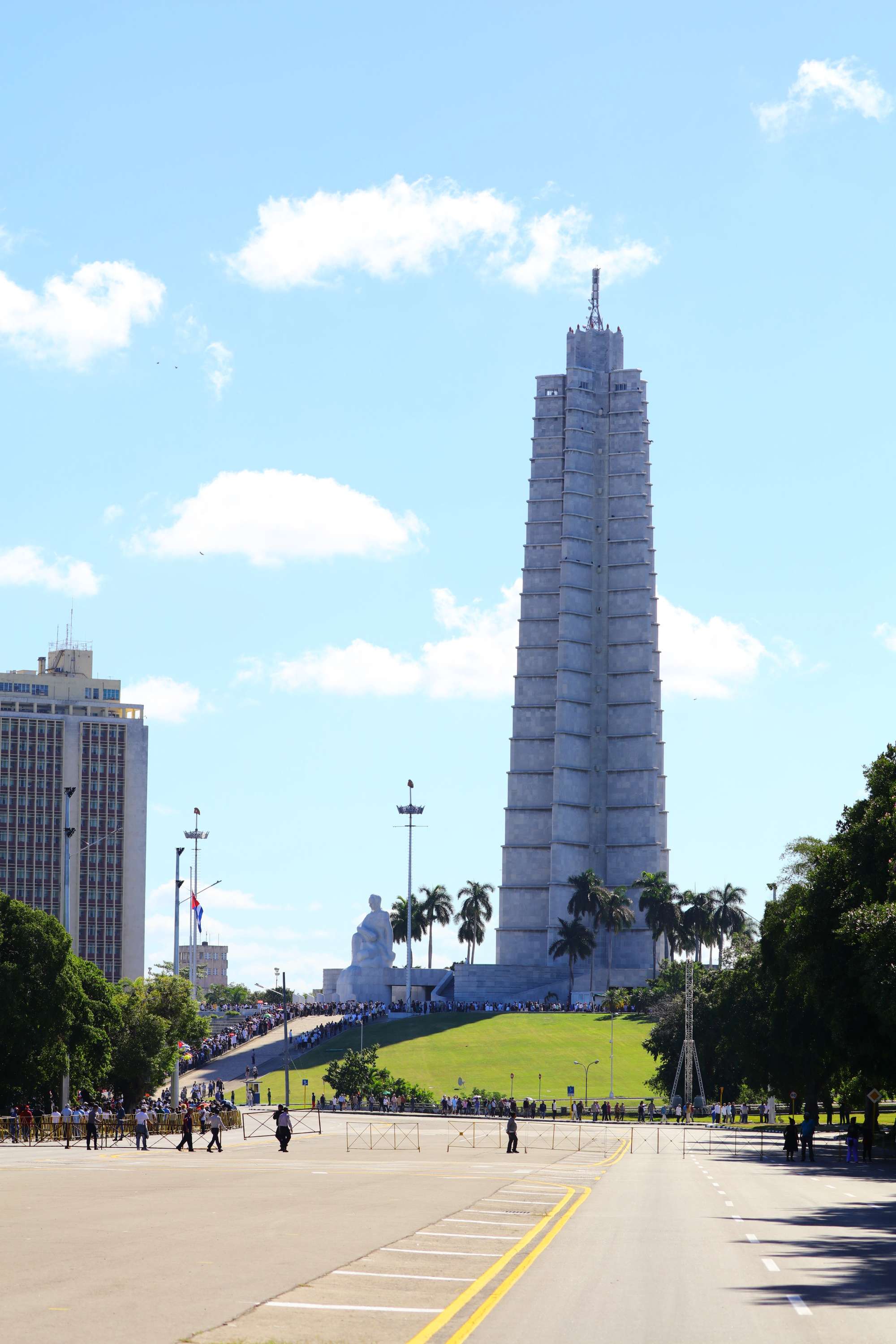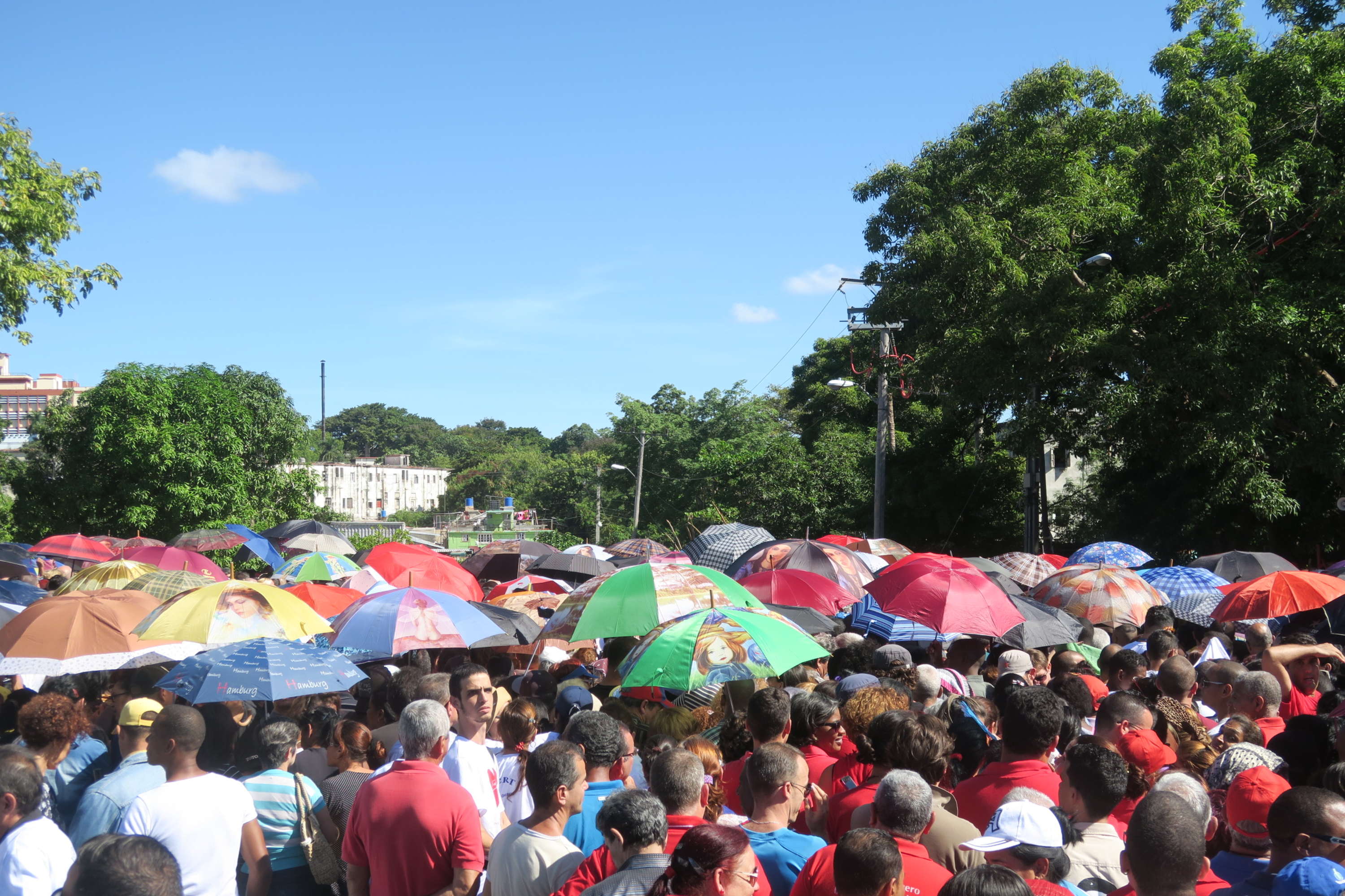 Nach dem Tod von Fidel ist immer noch einiges los. Seine Urne soll am Platz der Revolution aufgestellt sein. Da hin gehe ich nun, denn der Platz ist nicht weit vom Hotel. Ganz der Einzige bin ich nicht, überall stehen die Kubaner Schlange um auf den weitum abgeriegelten Platz zu gelangen. Ab und zu hört man ganze Chöre singen auf Fidel.