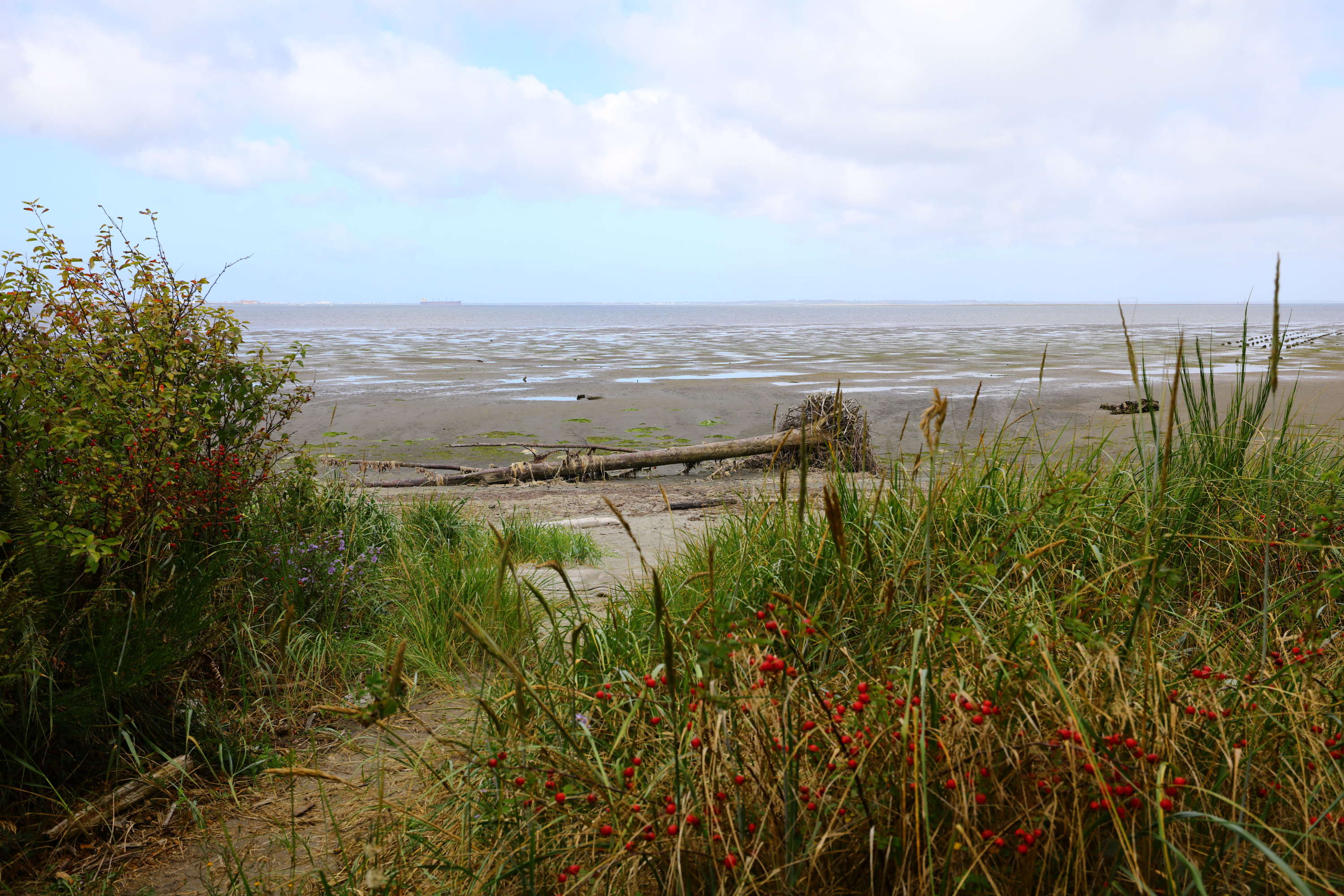 Mit ein wenig Gegenwind und neuem Pneu geht die Fahrt los zum Pazifik. Die Route zieht sich aber schon noch, und die aufziehenden Wolken gefallen mir so. Auch nicht so gut gefällt mir, dass es kaum Rastplätze gibt. Die gibt es eigentlich nur in State Parks, und davon kommen zum Glück einige. Die erste Pause gibt es bei kaltem Wind an einem Vogelbeobachtungsposten.