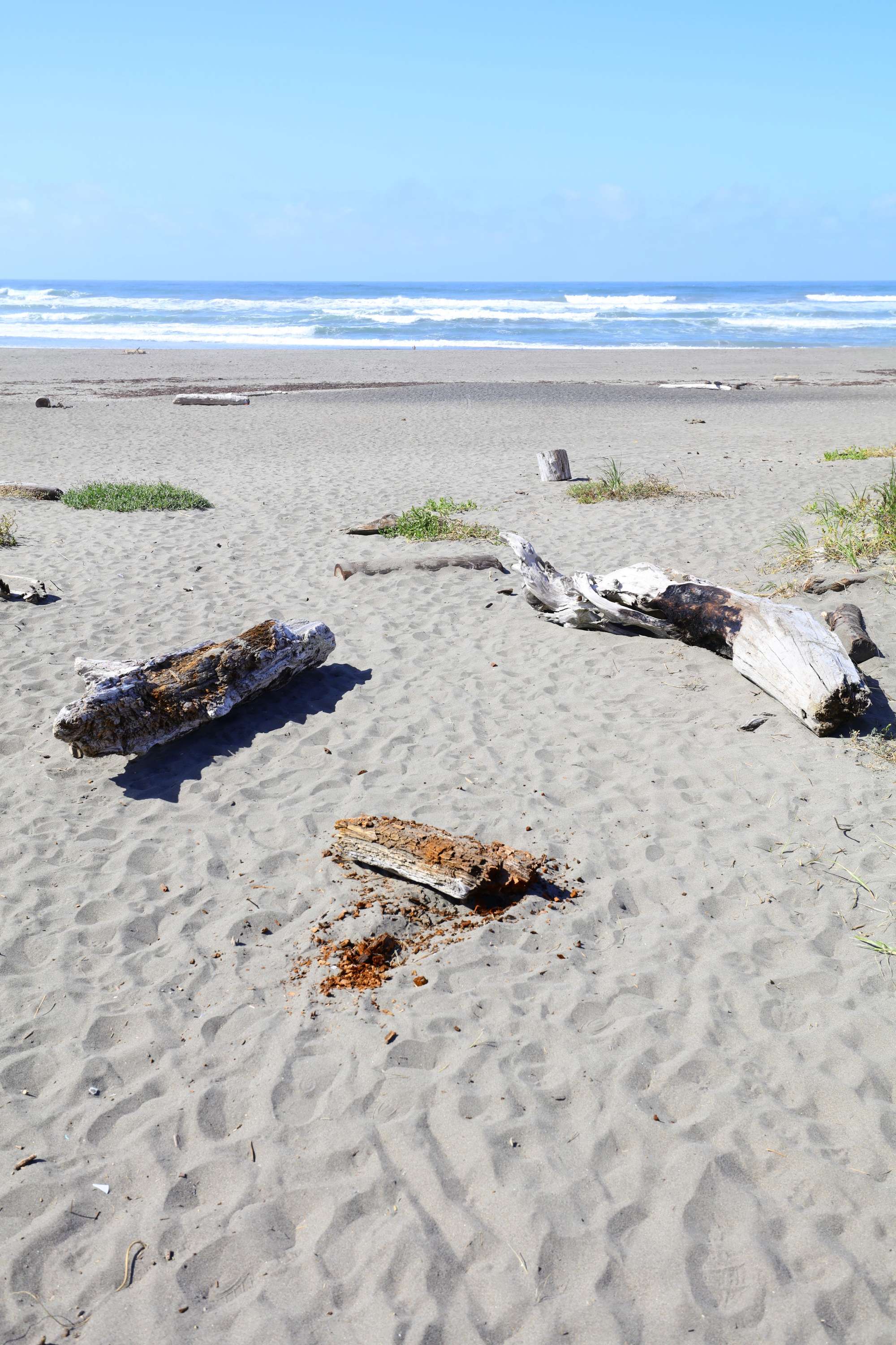 Für viele Kilometer bleibt es der einzige Kontakt mit dem Pazifik. Erst als die Strasse aus dem besiedelten Teil heraus führt und der Strand nicht mehr Privatbesitz ist, kommen auch wieder die wunderschönen Ausblicke auf den Ozean. Genau wegen solchen Strassen mache ich die Tour ja.