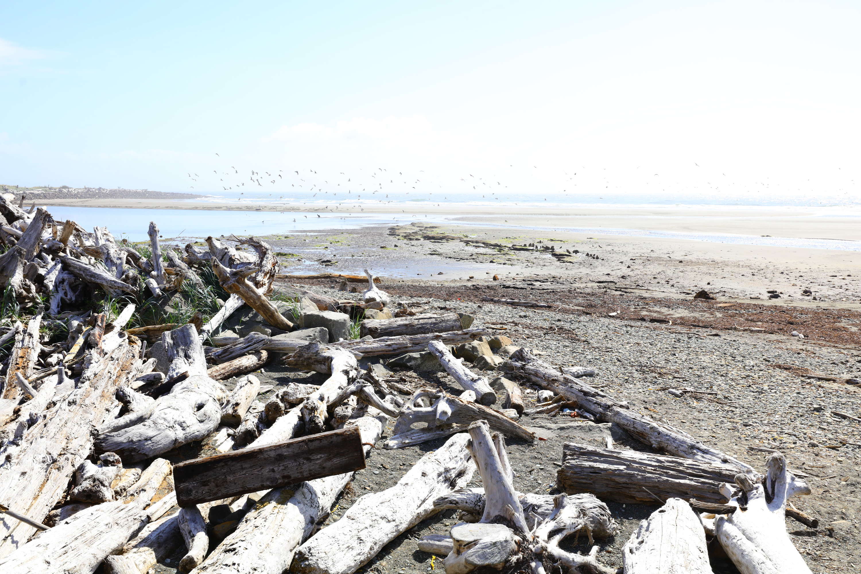Mit schönem Rückenwind führt die Strasse in einen Meeresarm hinein wo die Vögel bei Ebbe im Meeresboden nach Essbarem suchen.