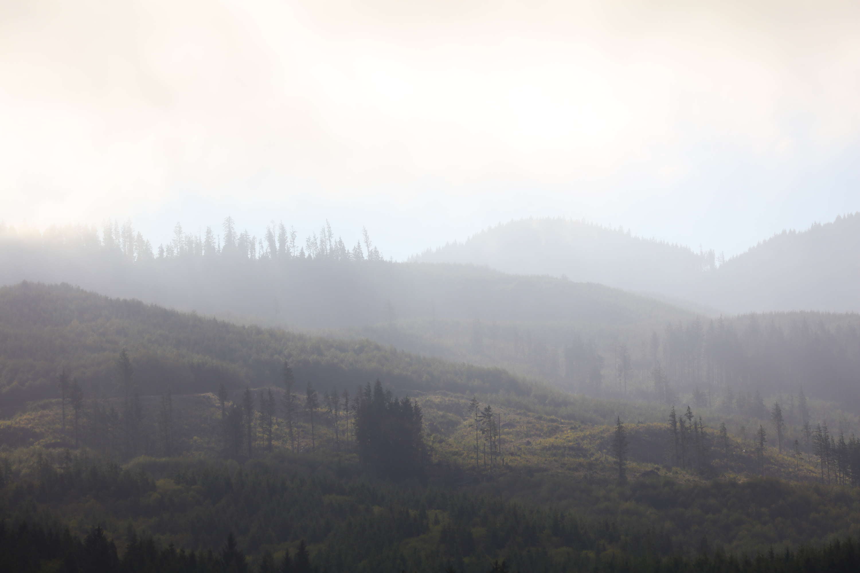 Die Wälder wechseln zu Baumplantagen wo alle Bäume genau dasselbe Alter haben. Manchmal ist das sogar angeschrieben und ich finde Tannen die genau so alt sind wie ich.