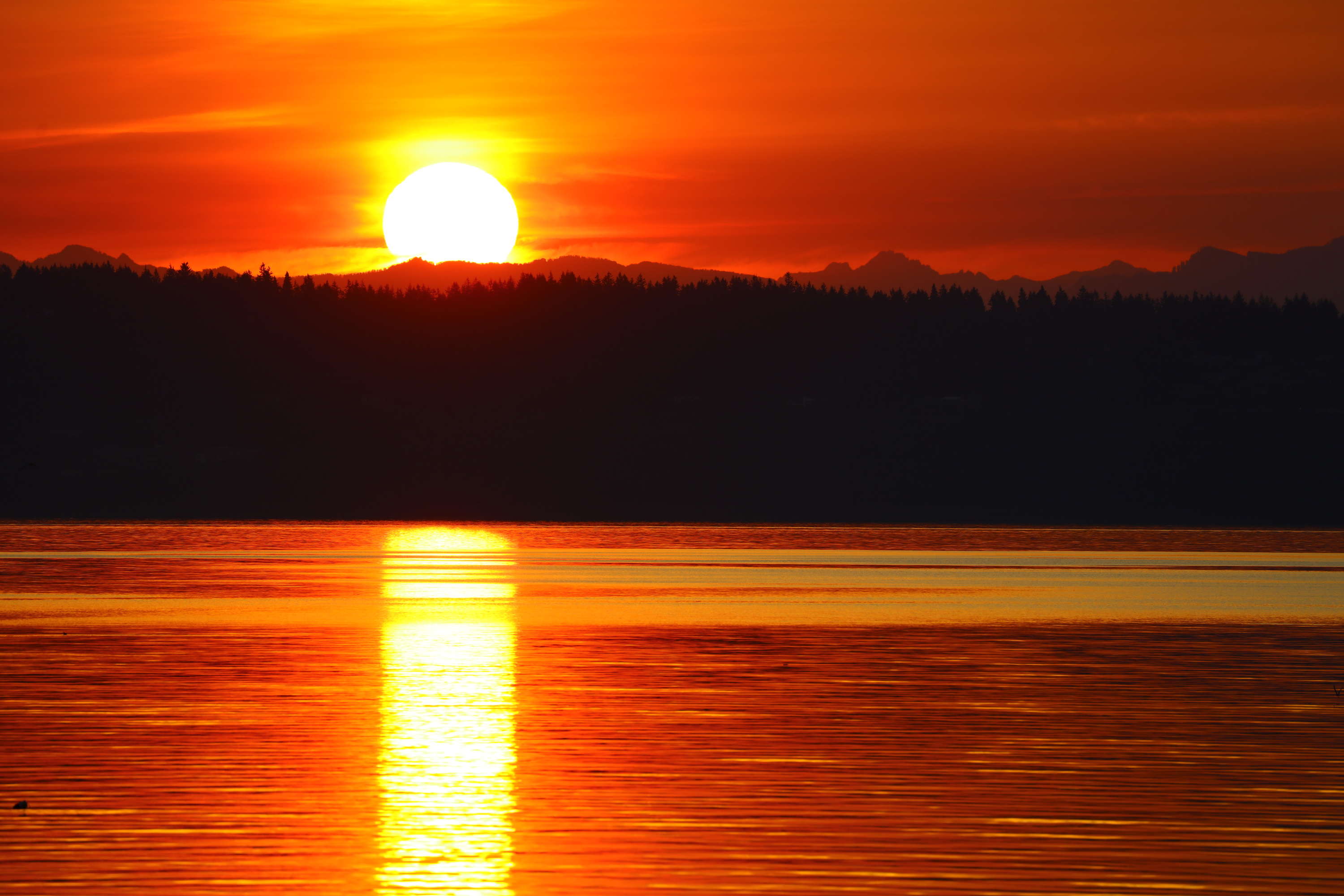 Pünktilich zum Sonnenaufgang stehe ich auf und fotografiere ihn. Leider ist Mt. Reinier nicht klarer zu sehen als gestern, aber zumindest ist die Luft ruhiger und die Bilder mit dem Teleobjektiv sind weniger verzerrt als gestern Abend.