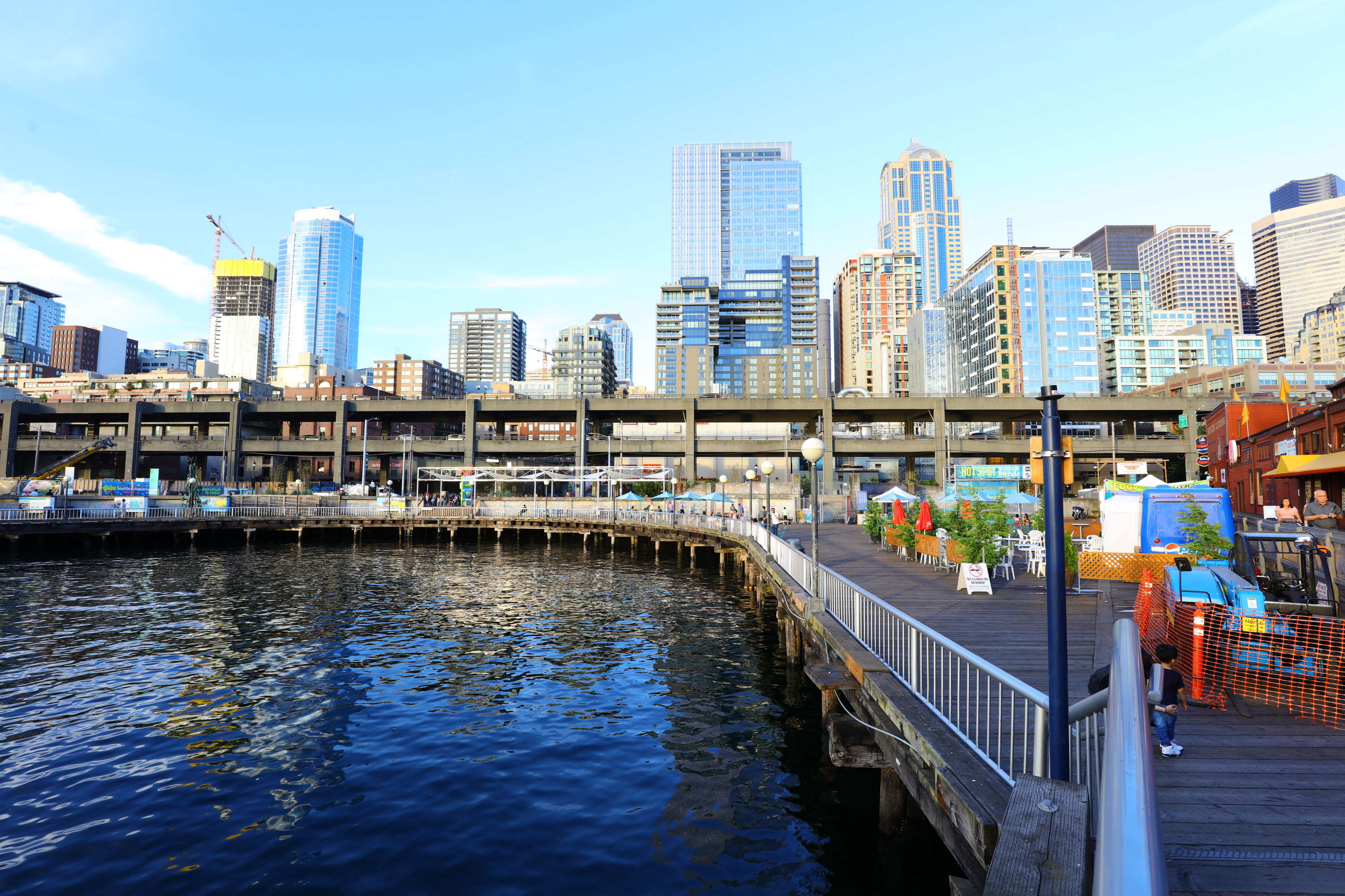 In Seattle gibt’s erst mal das Standardprogramn: Einchecken, alles einräumen, duschen und dann wieder raus zum Abendessen. Burger & Bier an der Uferpromenade tönt doch mal gut. Da ich gerade Lust habe, mache ich noch bei der Nachtfahrt des Touristenschiffs mit durch den Hafenbereich.