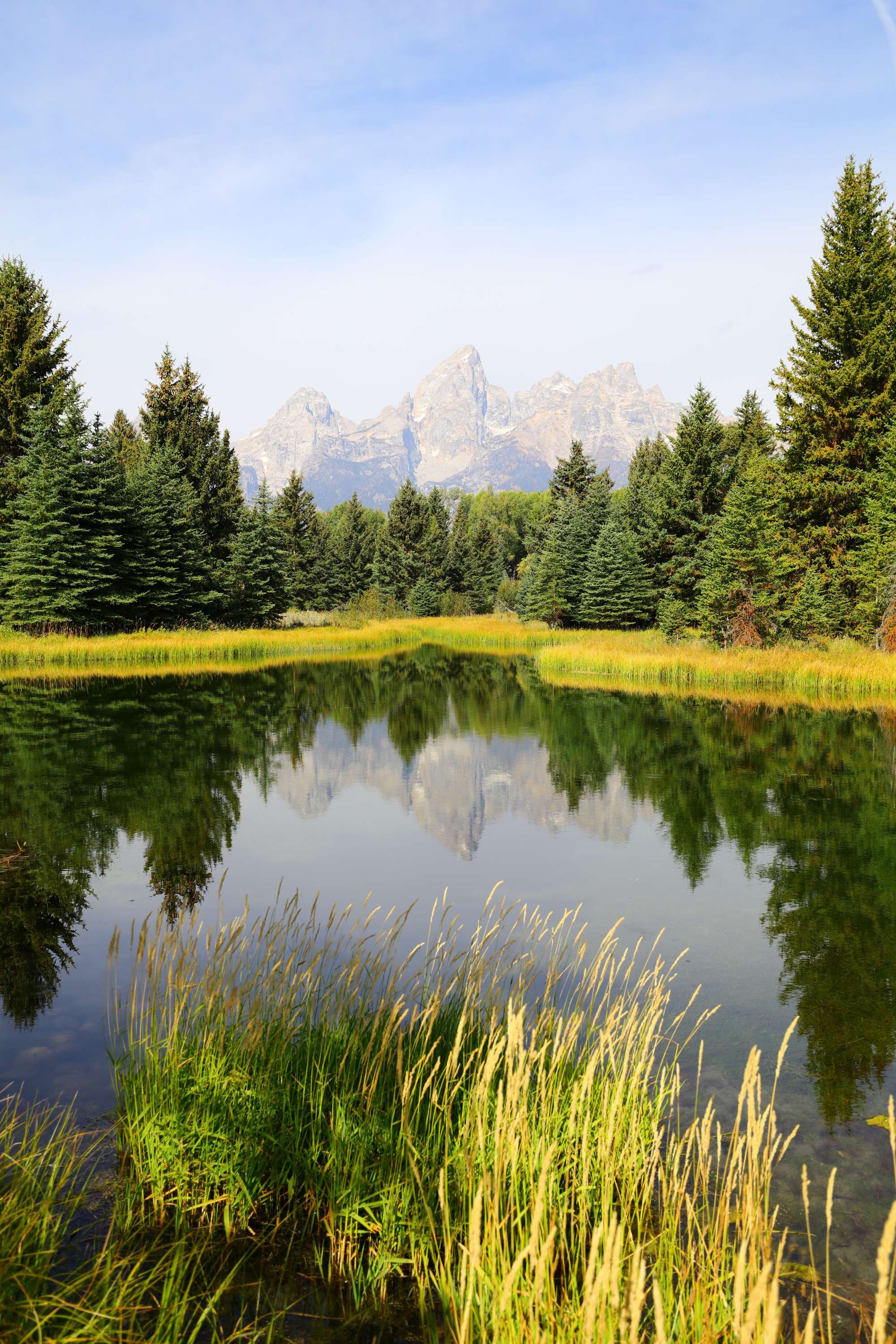 Die Aussicht auf den Grand Teton über die Hochebene ist athemberaubend. Aber sie wird noch getoppt durch den nächsten Halt: glasklare Bieberseen mit Enten und den Bergen im Hintergrund. Landschaftlich ist dieser Nationalpark schon wunderschön, obwohl es hier keine Vulkane hat wie im Yellowstone.